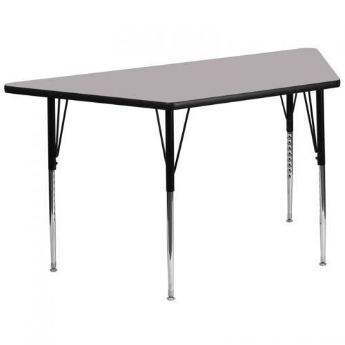 Flash Furniture's XU-A3060-TRAP-GY-T-A-GG warp resistant thermal fused laminate trapezoid activity table features a 1.125'' top and a thermal fused laminate work surface. This Trapezoid Laminate activity table provides a durable work surface that is versatile enough for everything from computers to projects or group lessons. Sturdy steel legs adjust from 21.125'' - 30.125'' high and have a brilliant chrome finish. The 1.125'' thick particle board top also incorporates a protective underside backing sheet to prevent moisture absorption and warping. T-mold edge banding provides a durable and attractive edging enhancement that is certain to withstand the rigors of any classroom environment. Glides prevent wobbling and will keep your work surface level. This model is featured in a beautiful Grey finish that will enhance the beauty of any school setting. [XU-A3060-TRAP-GY-T-A-GG] FL-XU-A3060-TRAP-GY-T-A XU-A3060-TRAP-GY-T-A