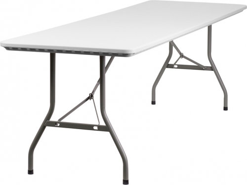 Commercial grade folding table that is designed to withstand the test of time! Flash Furniture's 30''W x 96''L Folding Table features a durable stain resistant blow molded top and sturdy frame. The blow molded top is super low maintenance and cleans easily. This 8 ft. table locks in place in a SNAP with the leg locking system for easy set-ups. This table can be used as a temporary seating solution or set-up in a permanent location for everyday use. [RB-3096-GG] FL-RB-3096 RB-3096