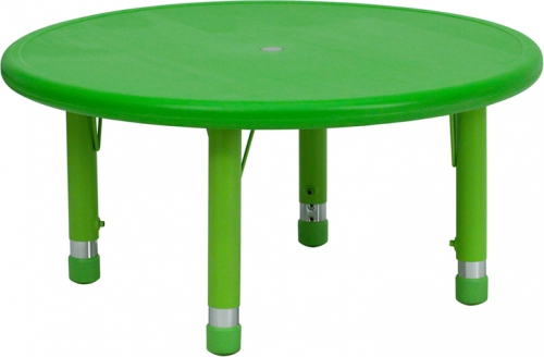 Kids activity tables are excellent for early childhood development. The primary colors make learning and play time exciting when several colors are arranged in the classroom. This durable table features a plastic top with steel welding underneath along with adjustable steel legs that is sure to last throughout the years. [YU-YCX-007-2-ROUND-TBL-GREEN-GG] FL-YU-YCX-007-2-ROUND-TBL-GREE YU-YCX-007-2-ROUND-TBL-GREEN
