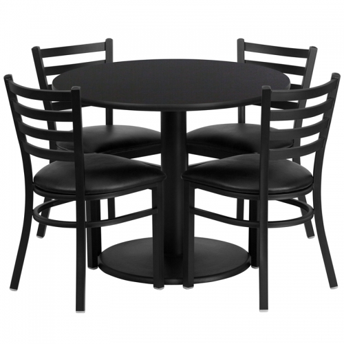 Flash Furniture 36'' Round Black Laminate Table Set with 4 Ladder Back Metal Chairs - Black Vinyl Seat [RSRB1029-GG] FL-RSRB1029 RSRB1029