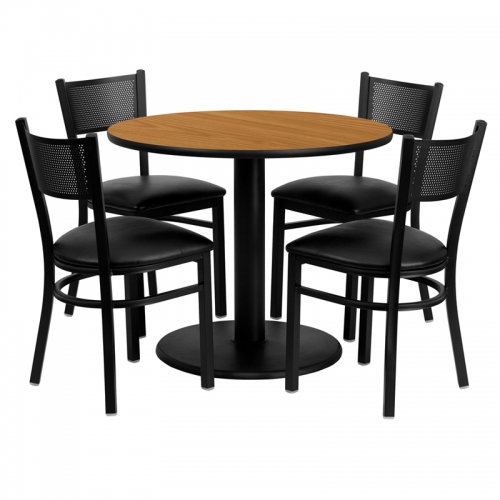 Flash Furniture 36'' Round Natural Laminate Table Set with 4 Grid Back Metal Chairs - Black Vinyl Seat [MD-0006-GG]