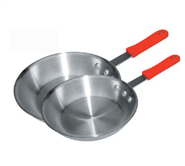 This large Winco FPT3-14 Apollo 3-Ply Fry Pan with Red Silicone Sleeve 14" is extremely useful in any commercial kitchen. NSF listed and constructed using tri-ply technology, this pan features a heavy gauge 18/8 stainless steel base and an aluminum core that provides excellent heat conductivity, while also being induction ready. It is NSF listed and easy to clean, and the removable red ergonomically designed silicone sleeve on the handle protects your chef from high temperatures up to 450 degrees Fahrenheit.