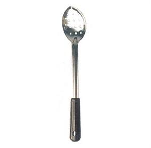 Great for basting, mixing and serving, the Winco BSPB-15 Perforated Basting Spoon with Bakelite Handle, 15" is made of durable, non-corrosive stainless steel. The head has evenly spaced holes to facilitate the draining off of fats, cooking liquids and marinades. Ideal for use with meat and poultry, potatoes, rice and vegetables, this multi-purpose cooking spook has a heat-resistant bakelite handle with a convenient hang hole.
