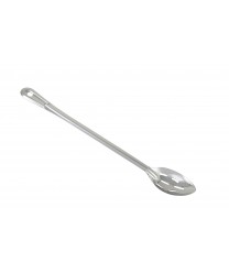 Enhance the taste of cooked foods when you use the Winco BSST-18 Slotted Basting Spoon with Stainless Steel Handle, 18" to mix, stir and serve. This durable slotted cooking spoon has a long handle to protect your hands from heat-related injury. The head has evenly spaced slots, which enable cooking liquids, marinades and dressings to flow through. A hang hole lets you store the spoon within easy reach.