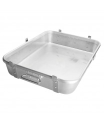 For delicious, mouth-watering roasts, turkey, chicken or ham, the Winco ALRP-1824L Aluminum Double Roast Pan with Straps and Lugs 18" x 24" won't let you down. Pan that lock together (must buy 2) to create an environment that seals in steam when roasting, creating results that are moist, juicy, tender and delicious, Constructed of 2.4 mm thick aluminum, this pan distributes heat evenly throughout the pan and seals in moisture, while the sturdy handles enable your kitchen cooks to transport it around the kitchen with confidence.