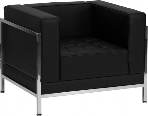 This attractive black leather reception chair will complete your upscale reception area. The design of this chair allows it to adapt in a multitude of environments with its smooth upholstered back, tufted seat cushions and visible accent stainless steel frame. [ZB-IMAG-CHAIR-GG] FL-ZB-IMAG-CHAIR ZB-IMAG-CHAIR
