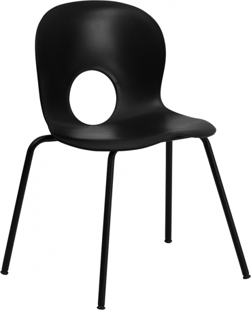 Flash Furniture HERCULES Series 770 lb. Capacity Designer Black Plastic Stack Chair with Black Powder Coated Frame Finish [RUT-NC258-BK-GG]