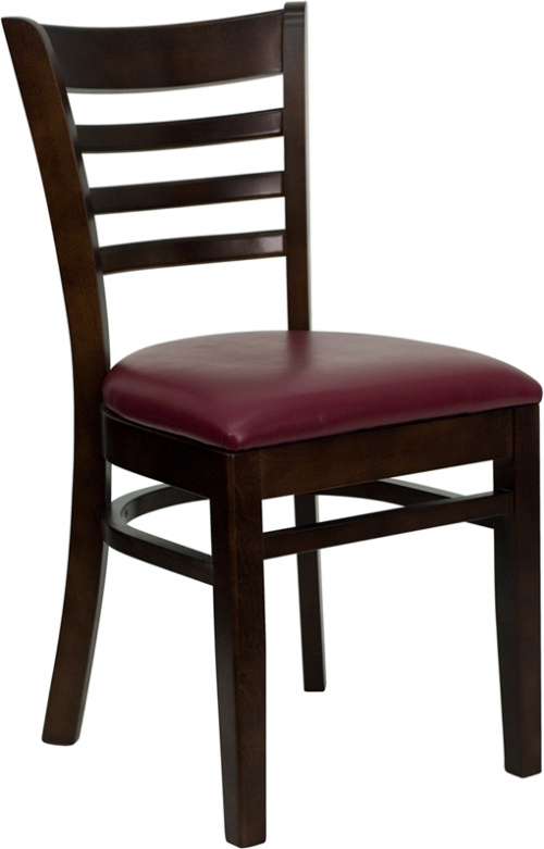 Flash Furniture HERCULES Series Walnut Finished Ladder Back Wooden Restaurant Chair with Burgundy Vinyl Seat [XU-DGW0005LAD-WAL-BURV-GG]