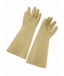 Use the reusable Winco NLG-916 Ivory Natural Latex Gloves, Size 9 to protect your hands and forearms from harmful chemicals. Designed to offer more coverage than shorter varieties, these water-resistant latex gloves are perfect for dishwashing, oven cleaning and other heavy-duty kitchen work.