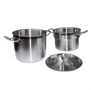 When melting chocolate for dipping strawberries, or making bread pudding, use the Winco SSDB-8 Master Cook Stainless Steel Double Boiler with Cover 8 Qt. This professional cookware makes melting chocolate or other delicate ingredients fool-prool. This set features a larger pot for placing the boiling water, and a smaller pot that fits on top for placing your delicate ingredients. A matching cover (included) will assist in the melting or cooking process. Made of durable stainless steel, this double boiler is induction ready and easy to clean.