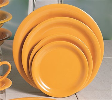Plate, 7-1/4'' dia., round, narrow rim, melamine, yellow, NSF Features Brand: Color Manufacturer's Category: Plate, Plastic Size: 7-1/4'''' Plastic: Melamine
