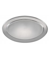 With a highly polished finished and durable construction, the Winco OPL-20 Stainless Steel Oval Platter 20" x 13-3/4" is a terrific serving tray for use at catered events, restaurants and cafes. This attractive oval serving tray features a contoured shape and an easy-grip, making it an excellent way to showcase your delicious food, and easy for your wait staff to hold while serving food. You can place this serving tray on the buffet table to display appetizers and finger foods, or on individual tables to present anything from bread and rolls, to hot side dishes and entrees. As versatile as it is lovely, this serving platter will serve many purposes in your food establishment.