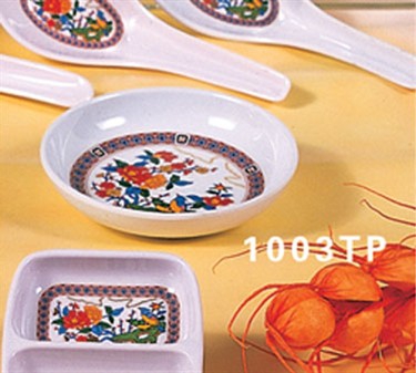 Featuring a stunning design against a pristine white background, the Thunder Group 1003TP Peacock Sauce Dish 3-7/8" will add a splash of color to your tabletop display. This 3-ounce sauce dish combines durability and function and is perfect for serving sauces, condiments and spices in commercial settings.