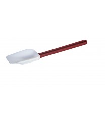 Featuring a concave blade and a slim red handle, the red and white Winco PSG-10 Silicone Bowl Shape Scraper, 10" is an all-around fabulous tool. The flexible bowl-shaped head does a great job scraping down the inner surfaces of mixing bowls, blenders, food processors and storage containers.