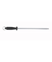 The Winco K-12S Sharpening Steel, 12" boasts quality materials and a sleek, easy-to-use design. This manual knife sharpening tool has a durable, anti-rust stainless steel rod and a comfortable black plastic handle, so you can maintain a safe, sure grip.