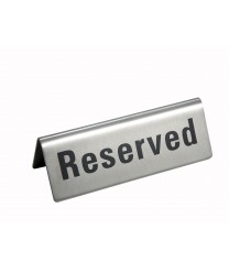 Place the Winco RVS-4 Stainless Steel Reserved Sign 4-3/4" x 1-3/4" on the table at catered events, restaurants and other table tops to indicate that the place is reserved for certain guests. This stainless steel sign is sturdy, durable and will be stable on the table so your guests will immediately take notice of it. It is also easy to clean so it will retain a professional pollshed look throughout many uses.