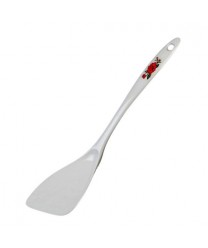 Use the Thunder Group 7009TL Melamine Thailand Spatula / Turner, 12-1/2" x 2-1/2" to handle a variety of foods, from chicken cutlets to wontons. This melamine turner is a pristine white with a delicate red floral pattern on its long, slim handle. Designed to last, this attractive spatula/turner is break-resistant and safe for use with a dishwasher.