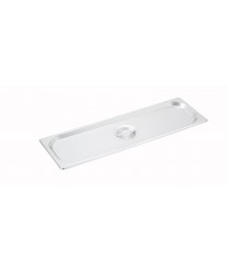 For half long size food pans, the Winco SPJL-HCS Half Long Size Solid Steam Table Pan Cover will provide the perfect fit. Made from stainless steel, this solid cover features an easy to grasp integrated handle and tapered edges that will help retain heat and keep contaminants out of your food.