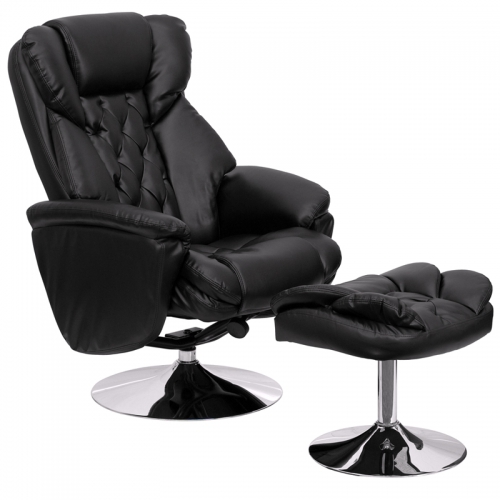 Flash Furniture Transitional Black Leather Recliner and Ottoman with Chrome Base [BT-7807-TRAD-GG]
