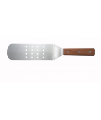 Designed to let oil, marinade and cooking juices drip through, this turner has strategically placed holes. The easy-grip handle is made of smooth wood, and it is riveted for extra strength and durability.