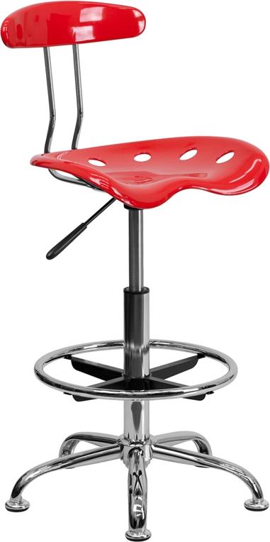 Flash Furniture Vibrant Cherry Tomato and Chrome Drafting Stool with Tractor Seat [LF-215-CHERRYTOMATO-GG]